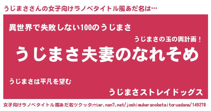 | 男性向けラノベタイトル風あだ名 | 『おまえをオタクにしてやるから、俺をうじまさにしてくれ! 』 |