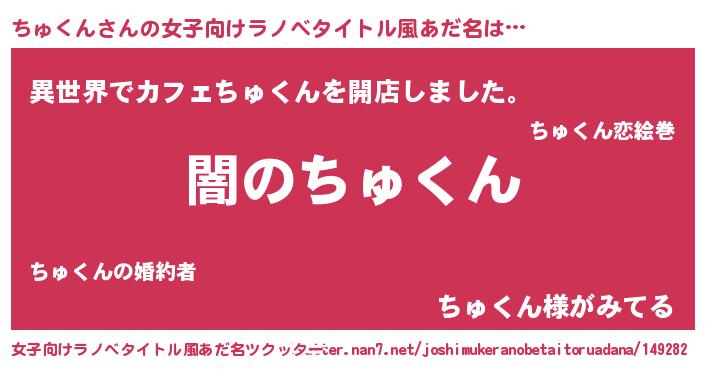 | 男性向けラノベタイトル風あだ名 | 『Re:ちゅくんから始める異世界生活』 |