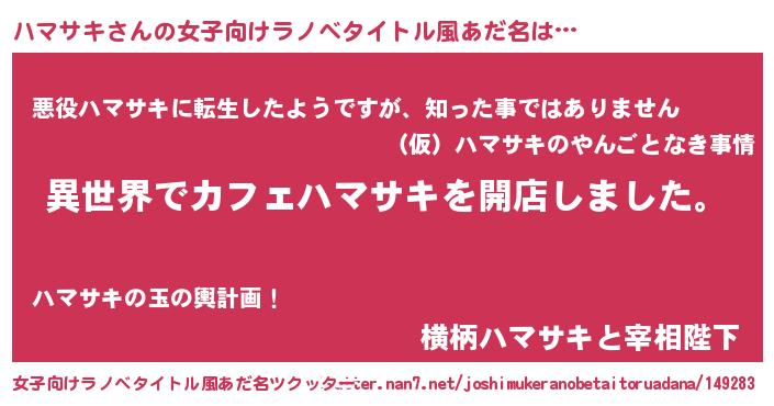 | ファンタジー風あだ名 | 『ハマディッシュ』『ヴァルハマーナ』 |
