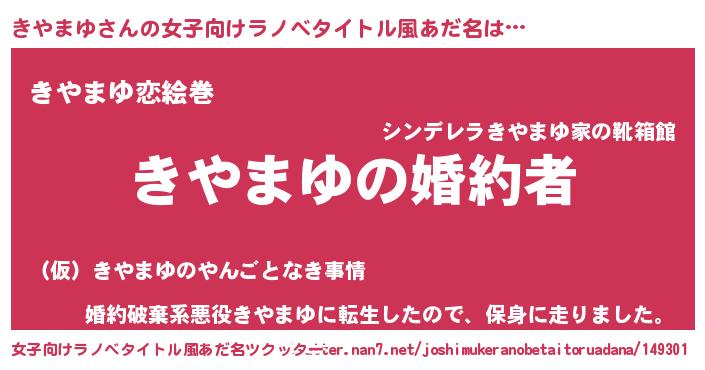 | 男性向けラノベタイトル風あだ名 | 『うちの娘の為ならば、俺はもしかしたらきやまゆも倒せるかもしれない。』 |