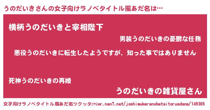 | 胡散臭い通販商品みたいなあだ名 | 『あなたにだけ特別に提供する100年もののヴィンテージワイン…その名も「うのだいき」』 |