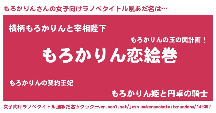 | 男性向けラノベタイトル風あだ名 | 『ノーゲーム・ノーモロカリン』 |