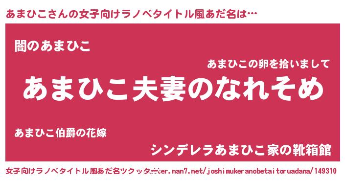 | 胡散臭い通販商品みたいなあだ名 | 『100人中100人が認めたマグネット磁石…その名も「あまひこ」』 |