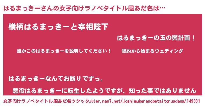 | 男性向けラノベタイトル風あだ名 | 『ハルマッキーアートオンライン』 |