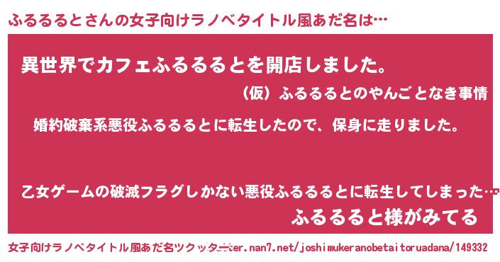 | 胡散臭い通販商品みたいなあだ名 | 『絶対に幸福をもたらす健康食品…その名も「ふるるると」』 |