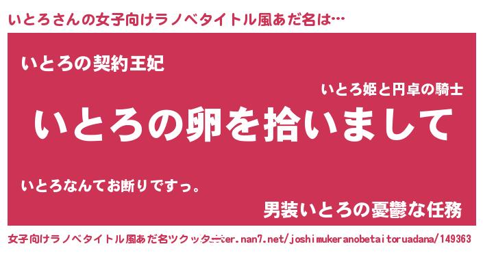 | 意味不明あだ名 | 『とにかく怪しいいとろ』『自称いとろ』 |