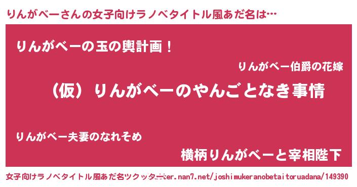 | 男性向けラノベタイトル風あだ名 | 『りんがべーの憂鬱』 |