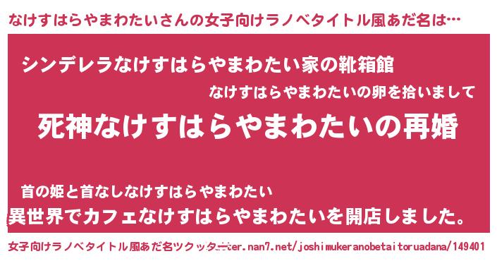 | ヘコむあだ名 | 『なけすはらやまわたい(遠い目)』 |