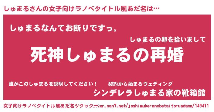 | 男性向けラノベタイトル風あだ名 | 『ノーゲーム・ノーシュマル』 |