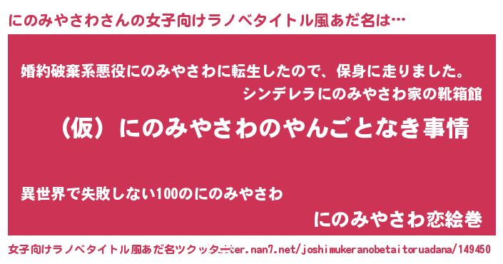 | ファンタジー風あだ名 | 『ニノフェル』『ユリニノヴァット』 |