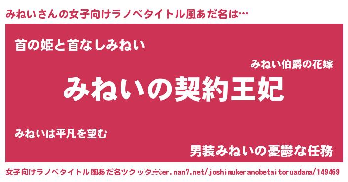 | 男性向けラノベタイトル風あだ名 | 『誰もが恐れるあのみねいが、ぼくの専属メイドになるようです。』 |