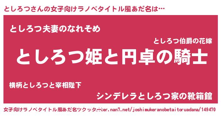 | 男性向けラノベタイトル風あだ名 | 『としろつの憂鬱』 |