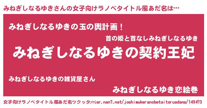 | 男性向けラノベタイトル風あだ名 | 『誰もが恐れるあのみねぎしなるゆきが、ぼくの専属メイドになるようです。』 |
