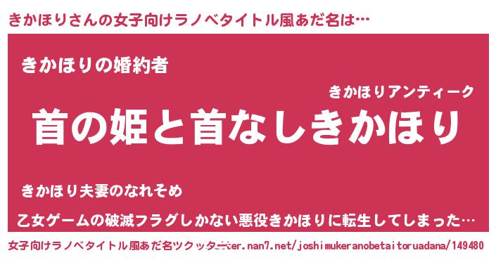 | ファンタジー風あだ名 | 『エターナルキカホリー』『ゼキカトゥ』 |