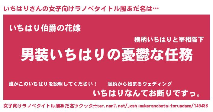 | 意味不明あだ名 | 『いちはりフォーエバー』『自称いちはり』 |