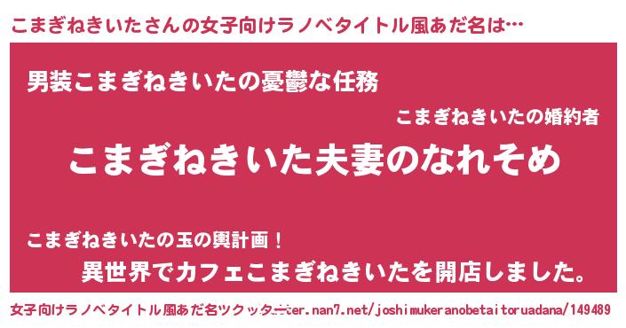 | 男性向けラノベタイトル風あだ名 | 『おまえをオタクにしてやるから、俺をこまぎねきいたにしてくれ! 』 |