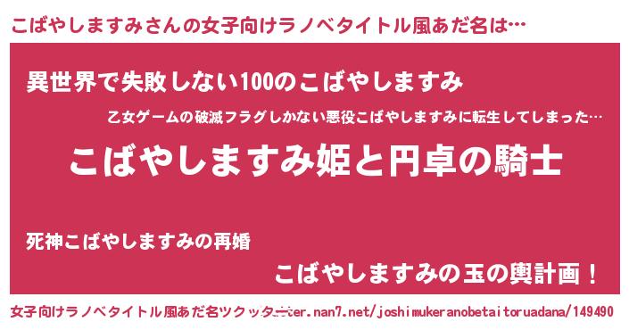 | 可愛いあだ名 | 『こんこん』『こばやしますみママ』 |