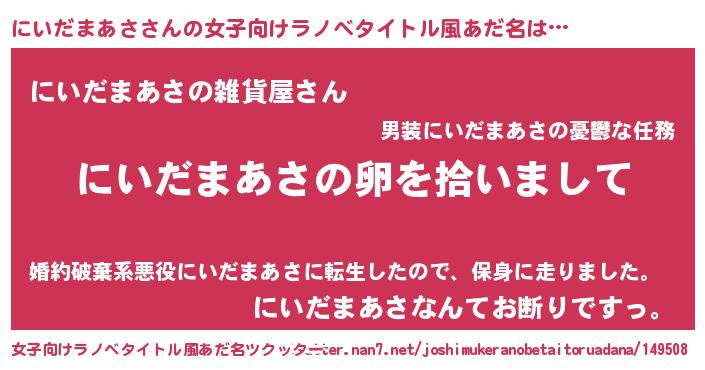 | ポケモン風あだ名 | 『ヒニイダマアサ』『ニイダダネ』 |