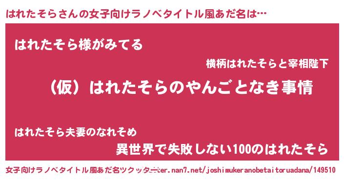 | 胡散臭い通販商品みたいなあだ名 | 『必ず成功する霊験あらたかなお札…その名も「はれたそら」』 |