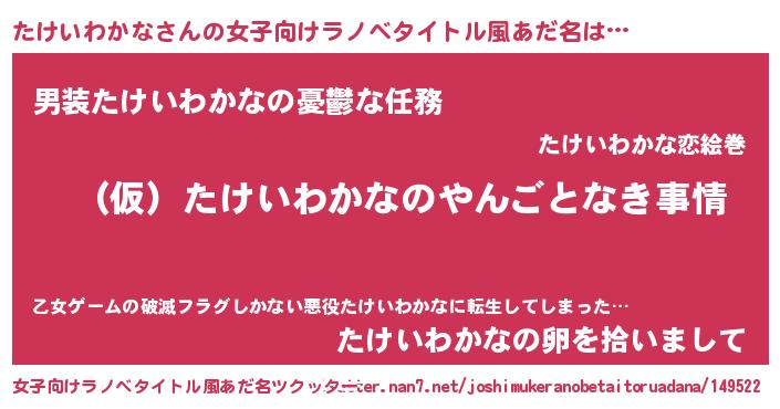 | ヒーロー風カッコイイあだ名 | 『スーパータケイワカナ』『幻影騎士タケ』 |