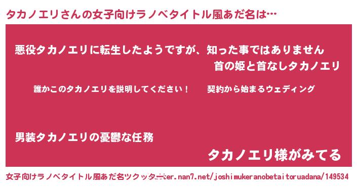 | 胡散臭い通販商品みたいなあだ名 | 『億万長者になれる霊験あらたかなお札…その名も「タカノエリ」』 |