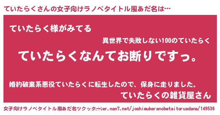 | 意味不明あだ名 | 『自称ていたらく』『永久保存ていたらく』 |
