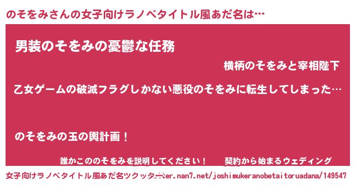 | 男性向けラノベタイトル風あだ名 | 『この素晴らしい世界にのそをみを!』 |