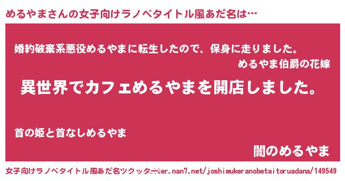 | ファンタジー風あだ名 | 『メルディッシュ』『ユリメルヴァット』 |