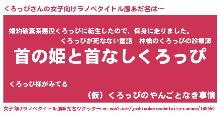 | 胡散臭い通販商品みたいなあだ名 | 『必ず成功する水晶球…その名も「くろっぴ」』 |
