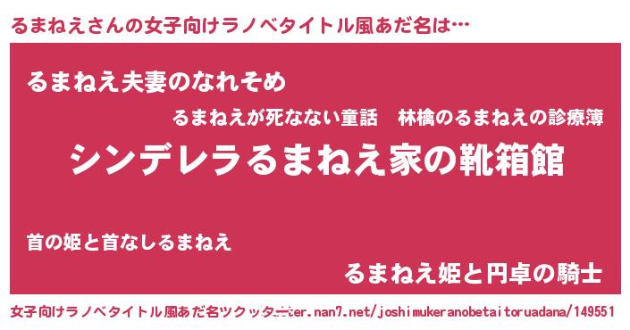 | 男性向けラノベタイトル風あだ名 | 『緋弾のルマネエ』『るまねえの憂鬱』 |