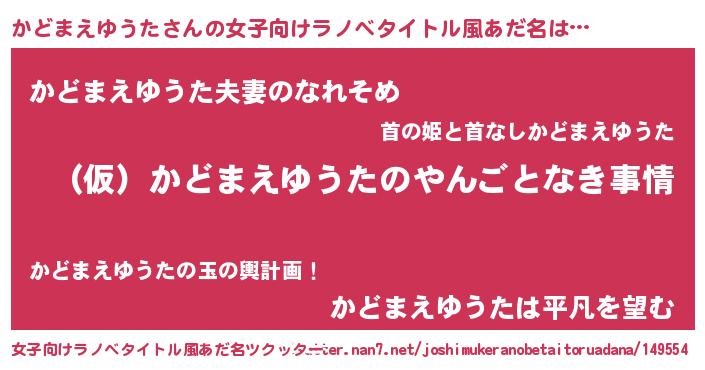 | 胡散臭い通販商品みたいなあだ名 | 『必ず成功するブレスレット…その名も「かどまえゆうた」』 |