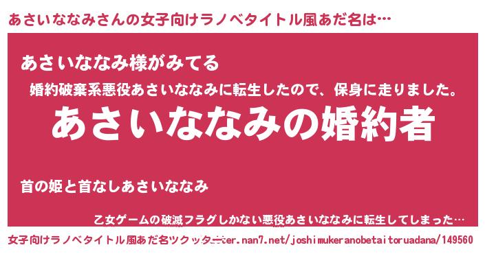 | 意味不明あだ名 | 『あさいななみフォーエバー』 |