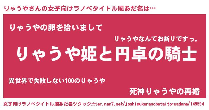 | 男性向けラノベタイトル風あだ名 | 『りゃうやの憂鬱』 |