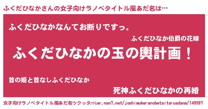 | 男性向けラノベタイトル風あだ名 | 『転生したらふくだひなかだった件』 |