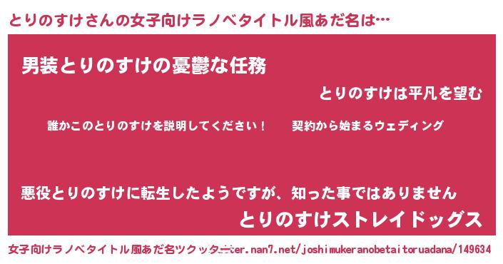 | 男性向けラノベタイトル風あだ名 | 『トリノスケアートオンライン』 |