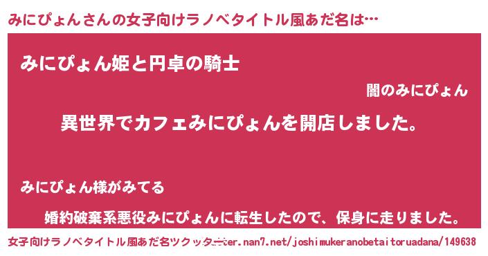 | ヘコむあだ名 | 『みにぴょん(笑)』『みにっふぃ~』 |