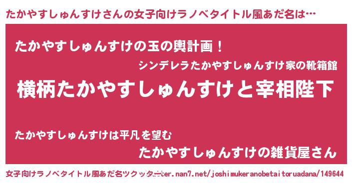 | 肩書あだ名 | 『たかやすしゅんすけプロデューサー』 |