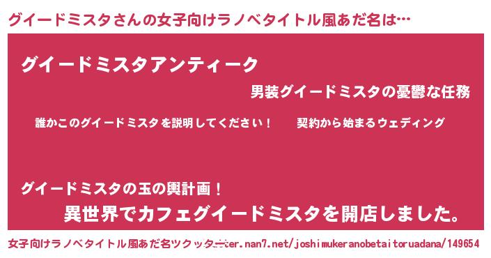 | 男性向けラノベタイトル風あだ名 | 『グイードミスタアートオンライン』 |