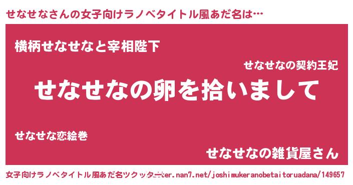 | 意味不明あだ名 | 『とにかく怪しいせなせな』 |