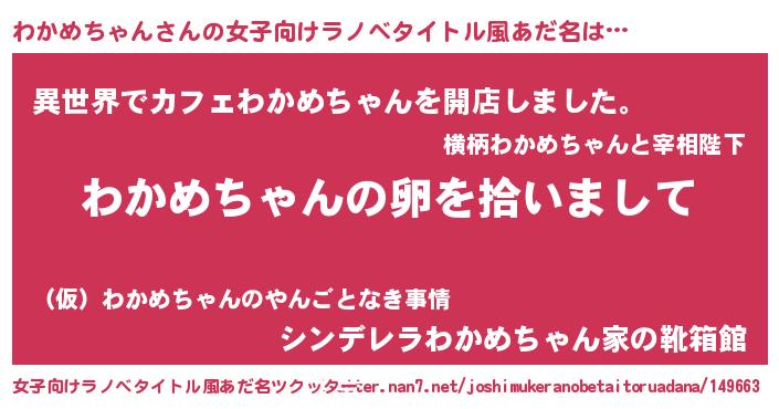 | 男性向けラノベタイトル風あだ名 | 『わかめちゃんの嫁は女の子じゃないと思った?』 |