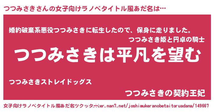 | 胡散臭い通販商品みたいなあだ名 | 『信頼と実績のサプリメント…その名も「つつみさき」』 |