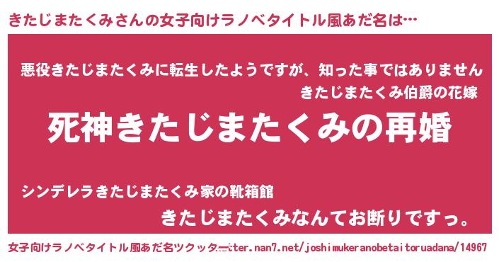 | 男性向けラノベタイトル風あだ名 | 『ノーゲーム・ノーキタジマタクミ』 |