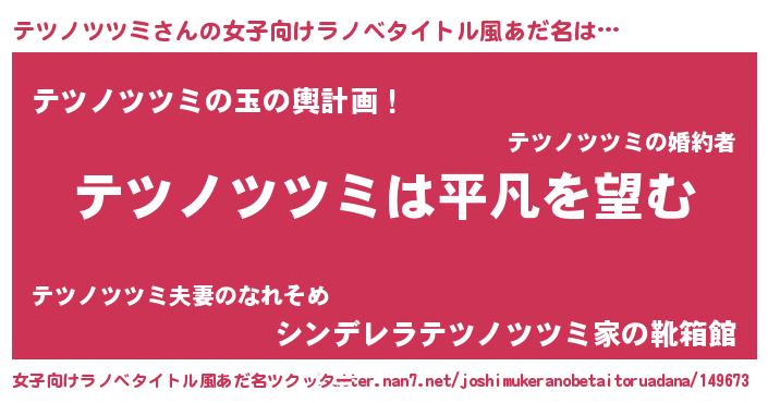| 胡散臭い通販商品みたいなあだ名 | 『信頼と実績のサプリメント…その名も「テツノツツミ」』 |