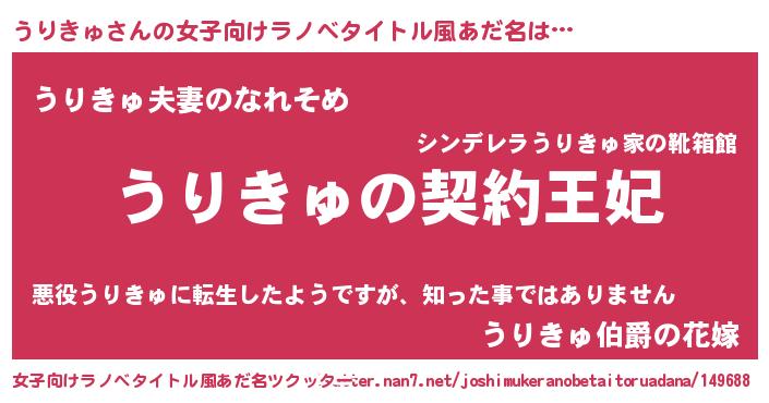 | 胡散臭い通販商品みたいなあだ名 | 『来世でも幸せになれる水素水…その名も「うりきゅ」』 |