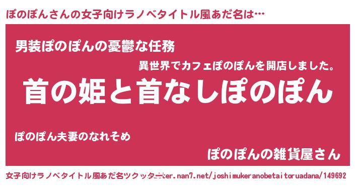 | 男性向けラノベタイトル風あだ名 | 『はたらくぽのぽんさま!』 |