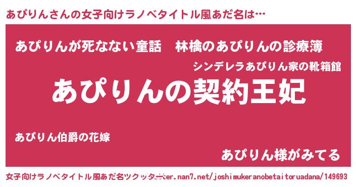 | 男性向けラノベタイトル風あだ名 | 『あぴりんという概念が存在しない退屈な世界 』 |