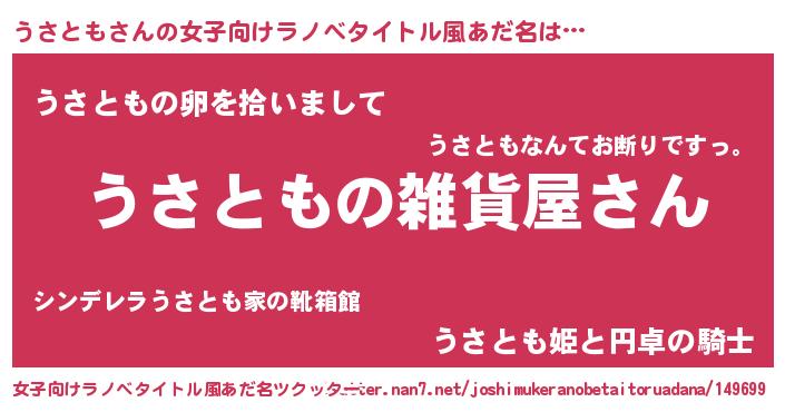 | 男性向けラノベタイトル風あだ名 | 『やはりうさともの青春ラブコメはまちがっている 』 |