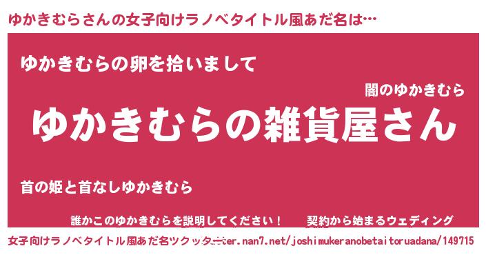 | 男性向けラノベタイトル風あだ名 | 『やはりゆかきむらの青春ラブコメはまちがっている 』 |
