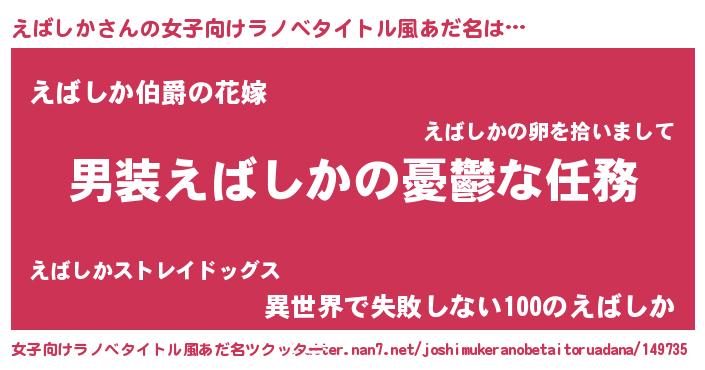 | 意味不明あだ名 | 『えばしかフォーエバー』『自称えばしか』 |
