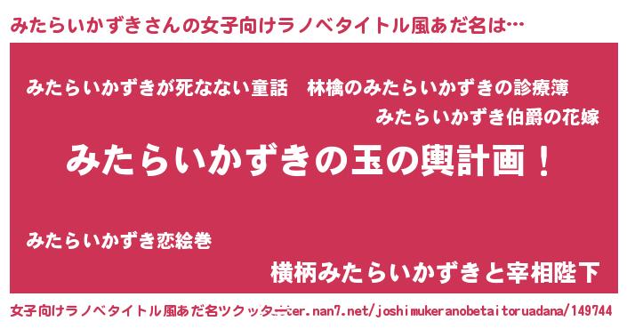 | 胡散臭い通販商品みたいなあだ名 | 『あなたにだけ特別に提供する100年もののヴィンテージワイン…その名も「みたらいかずき」』 |
